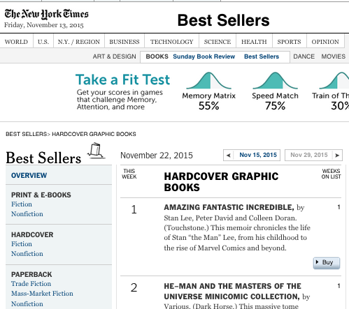 AMAZING FANTASTIC INCREDIBLE STAN LEE tops New York Times bestseller list!