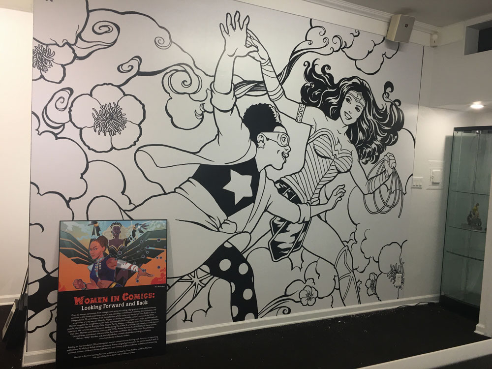 Also, the Society of Illustrators in New York City is open again, and now you can see the exhibit Women in Comics: Looking Forward, Looking Back until October 26. The exhibit features this full wall display of Colleen’s art from Wonder Woman 750, as well as other art by Colleen and great creators like Trina Robbins, Nell Brinkley, Ramona Fradon, and more.